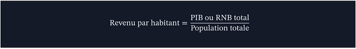 Il est généralement calculé en divisant le revenu national brut (RNB) ou le produit intérieur brut (PIB) d’un pays par le nombre total d’habitants.